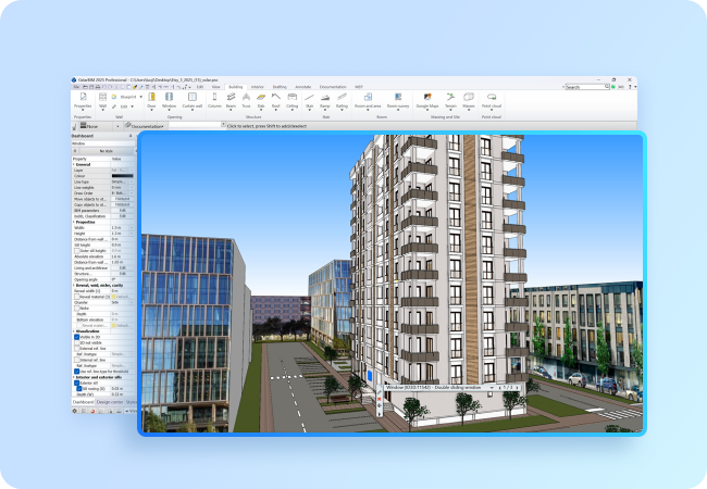 Con modelado paramétrico y objetos inteligentes coordinados, GstarBIM ofrece herramientas de modelado inteligentes para muros, puertas, ventanas, techos, columnas, vigas, escaleras, rampas y barandillas. Combina la precisión del CAD con rápidas capacidades de diseño visual, ofreciendo facilidad de uso y una producción de planos eficiente.