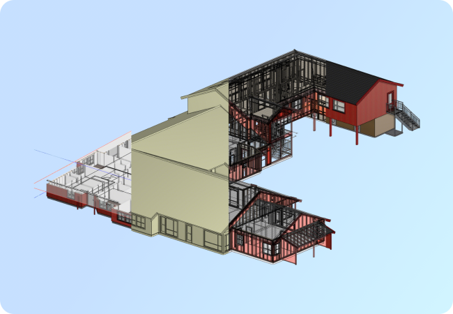 Ofrece modelos de alambre, sombreado, escala de grises, modelo de papel y otros estilos visuales. 3D Section Box gestiona la inspección de modelos complejos y admite planos de planta subyacentes en la vista 3D.