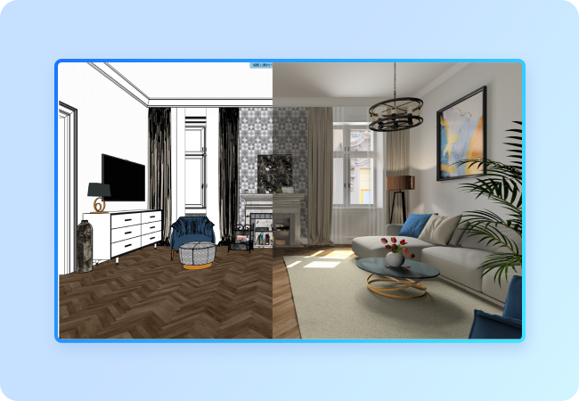 El renderizado integrado en GstarBIM ofrece iluminación y sombras precisas, con resultados de calidad fotográfica y un control preciso de las fuentes de luz y la complejidad del modelo. El renderizado en tiempo real genera imágenes fotorrealistas al instante a medida que se modifican el modelo o los parámetros. Además, el plugin oficial de renderizado D5 permite la sincronización con un solo clic de los modelos de GstarBIM con D5 Render, con una conexión de datos completa que transfiere el modelo, las luces, los materiales e incluso los puntos de vista de la cámara.