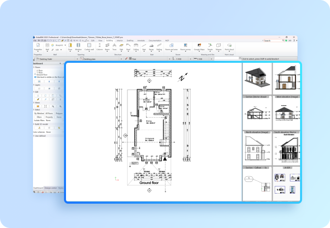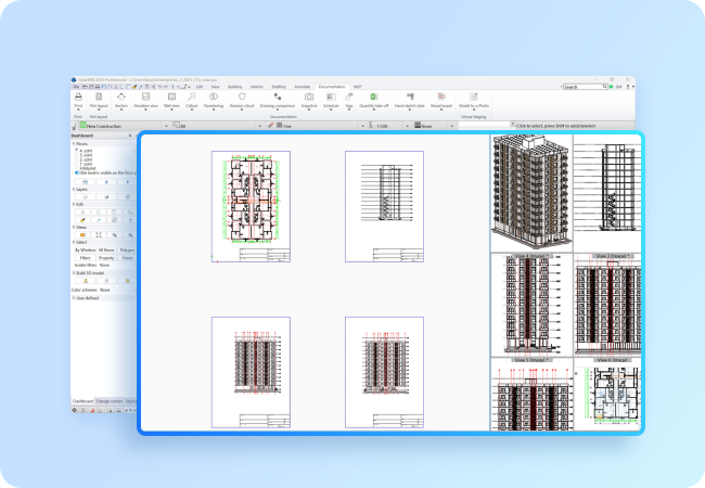 Genera automáticamente dibujos 2D basados ​​en el modelo BIM. Ofrece herramientas de sección que admiten secciones horizontales, segmentadas y de terreno. Las ventanas gráficas y la visibilidad se pueden definir según los requisitos de la parcela, y todos los dibujos relacionados se actualizan automáticamente cuando el modelo cambia para garantizar la precisión del proyecto.