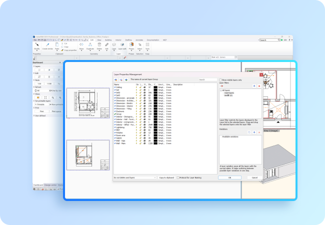 Permite la creación por lotes de diseños de gráficos y la colocación flexible de la ventana gráfica con su escala y diversos estilos de vista.